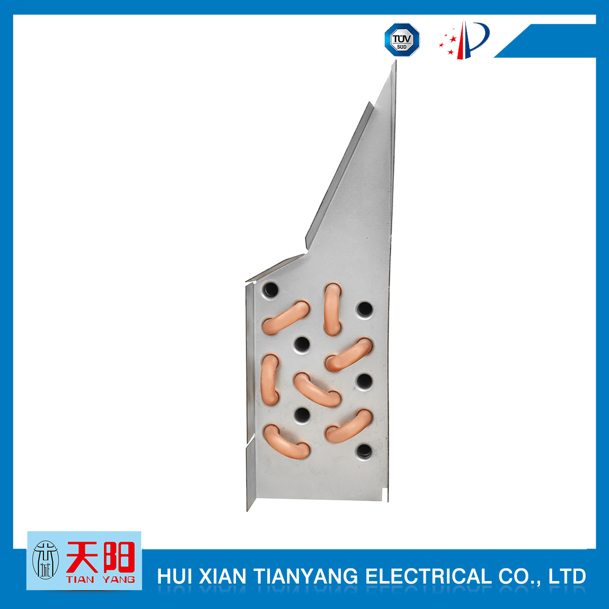 輝縣天陽電器有限責任公司位于肥沃的中原河南省輝縣市學院路中段工業集聚區興業園3號廠房,以制冷設備用冷凝器,蒸發器,熱交換器為主。主要材料為銅管鋁翅片,銅管銅翅片,鋁管鋁翅片。廣泛應用于冰箱冰柜,制冷設備,暖通設備,空調,自動售貨機,冷干機,超市立風柜,冷藏車,烘干機等產品領域。  公司自1998年成立以來,始終堅持:“科技造就產業、質量成就信譽、誠信鑄就輝煌”的質量方針,從產品拓展上堅持“人無我有,人有我優,人優我特的”經營理念,25年來,從1998年開始供應河南冰熊集團下屬的冷柜廠,制冰機廠各種冷凝器;2003年之后,原冰熊集團的精英志士開始在全國各地發展,所到之處依托我公司供貨,以致于多家目前已具行業中佼佼者的公司,從而建立了如凱雪公司,兆邦公司、凌云公司、海寶公司、正雪公司、上海忠云、山東德萊維等幾十余家公司在草創時期的啟蒙供貨商,友好共贏長達十余年,成為我國制冷行業的供應商。以致在2015年初雙匯集團面向社會的招標書中指名要我公司冷凝器、蒸發器指定產品供應商